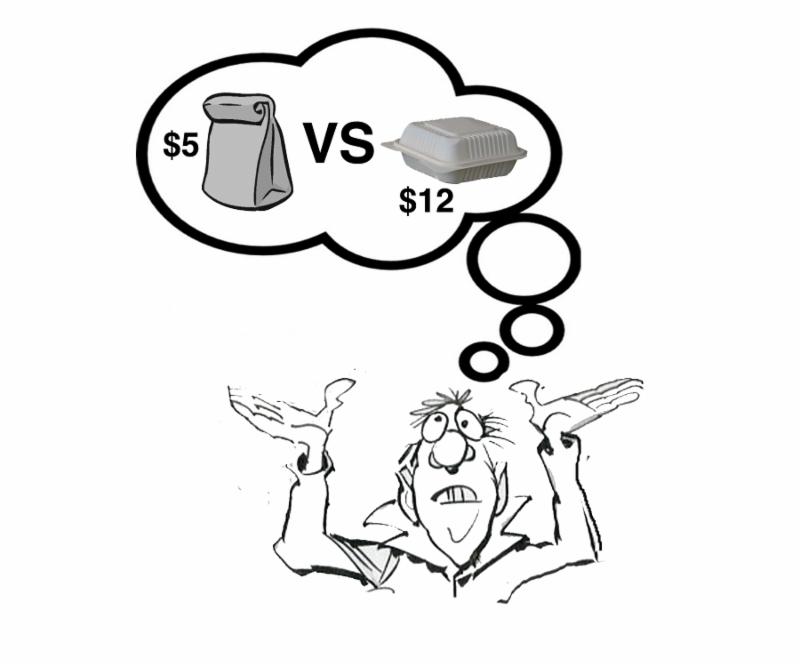 When you’re actually paying for one lunch, it might not seem that expensive. Eating four lunches out a week at $10 each has to be cheaper than throwing away $50 on groceries at the start of the week, right? Actually, studies have shown that eating out for lunch can drain anywhere between $1,500 and $2,500 per year from your budget, depending on where and how often you go out to eat. That might seem like an outrageous amount, but the math is pretty clear. Eating out four times a week, with each meal costing about $12, for forty-eight working weeks in the year gives us a total of $2,304.